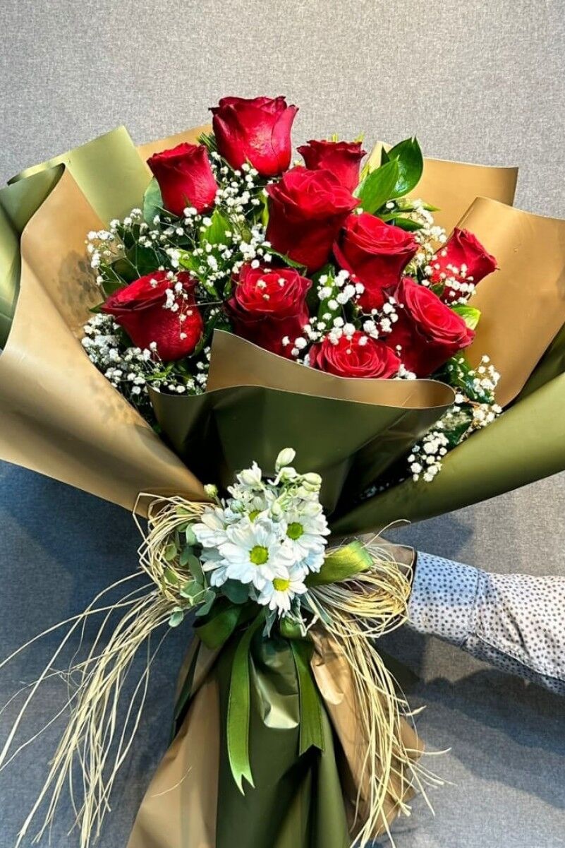 11 adet taze yerli gül ve zarif cipsofilyaların özenle bir araya geldiği bu buket, her ortamda romantik ve doğal bir atmosfer yaratır. Güllerin taze ve canlı renk tonları, cipsofilyaların narin dokusuyla mükemmel bir uyum sağlar. Doğal yeşilliklerle tamamlanan bu şık buket, zarifliği ve doğallığı ile göz alıcı bir güzellik sunar.